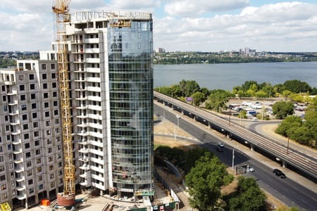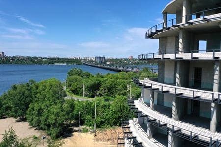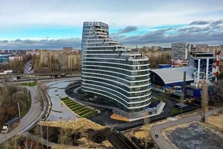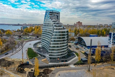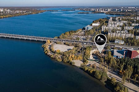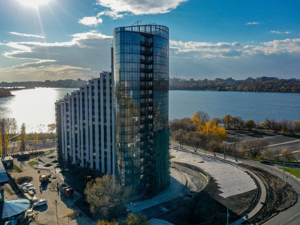 Витражное остекление, подчеркивающее плавность линий и величественность форм гармонирует с великолепной панорамой парковой зоны и Воронежского водохранилища, расположившейся прямо перед комплексом. Близость к центру в сочетании с расположением у водоема и парковой зоны позволяет с уверенностью говорить об уникальности проекта, который позволит своим жителям оставаться в привычной городской среде с развитой и доступной инфраструктурой наравне с возможностью наслаждаться природой.