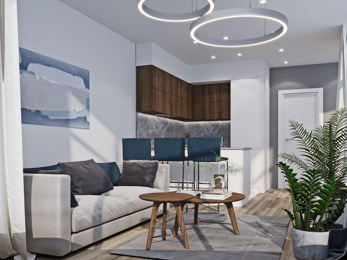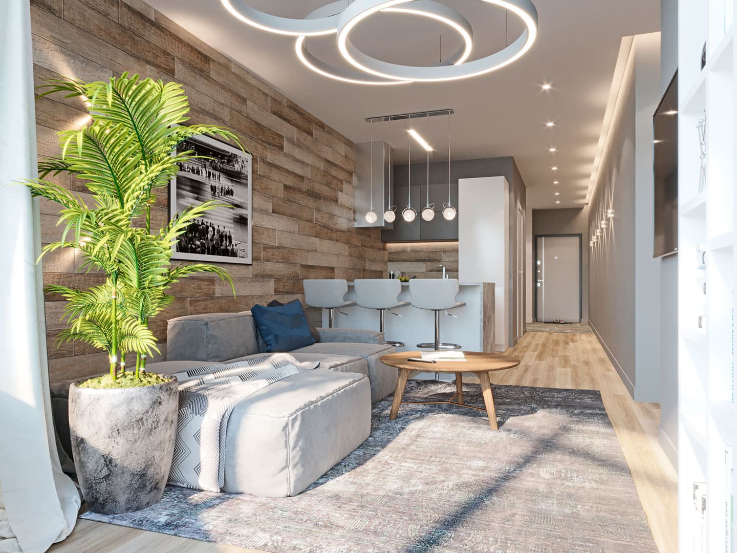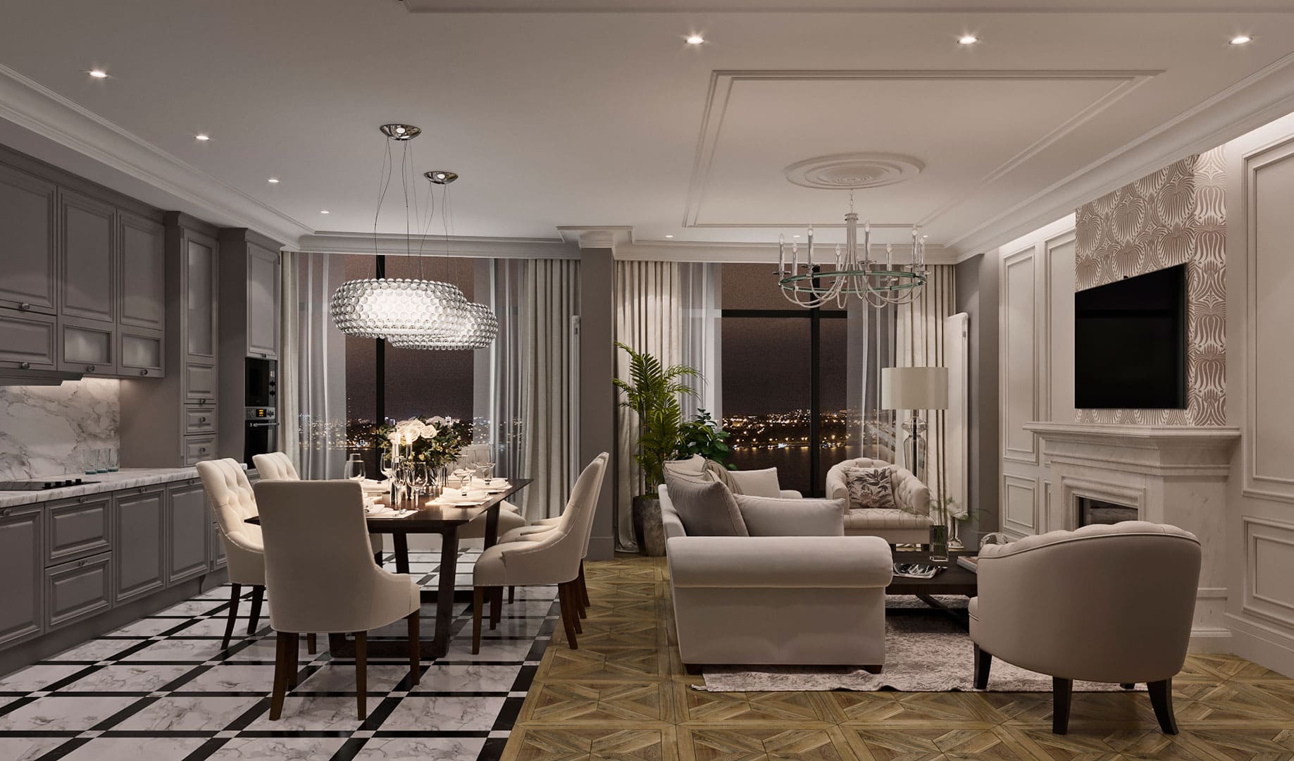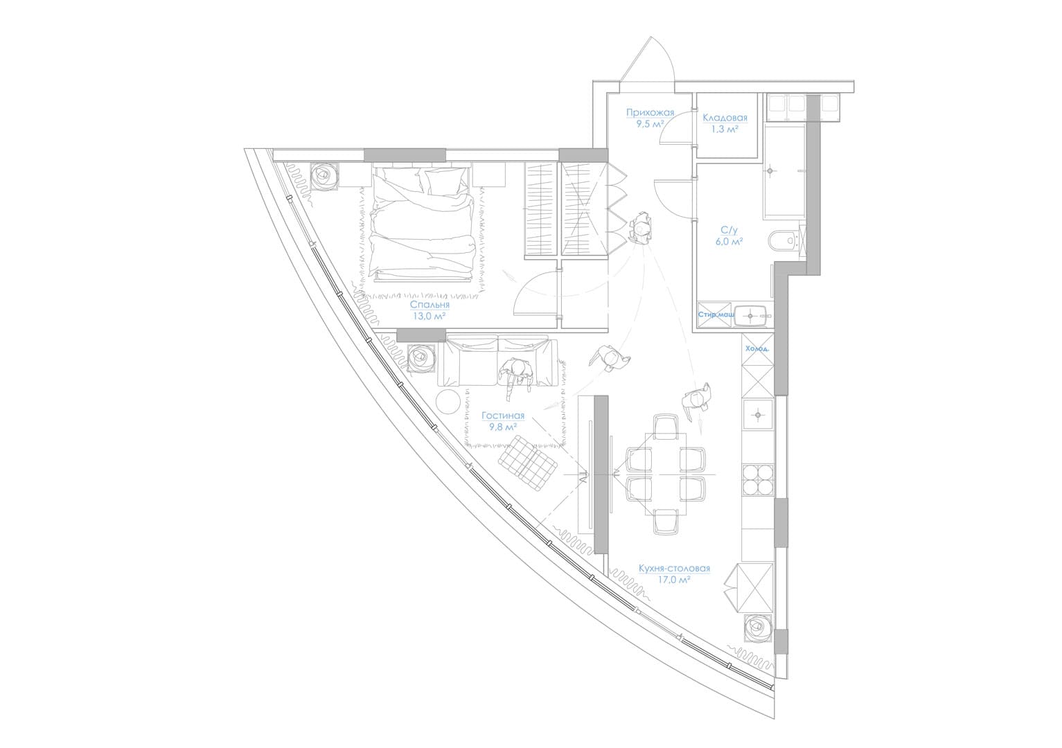 Полностью авторский проект, лишенный понятия «типовой этаж», предусматривает различные планировочные решения на каждом этаже, наличие больших террас, современные комфортные планировки варьируются от 31 до 182 кв. м и включают как классические одно-, двух-, трех- и четырехкомнатные квартиры, так и квартиры евро-формата с совмещенной кухней-гостиной. В комплексе также предусмотрен подземный паркинг и комплексное благоустройство с элементами ландшафтного дизайна, уже ставшие визитной карточкой застройщика.